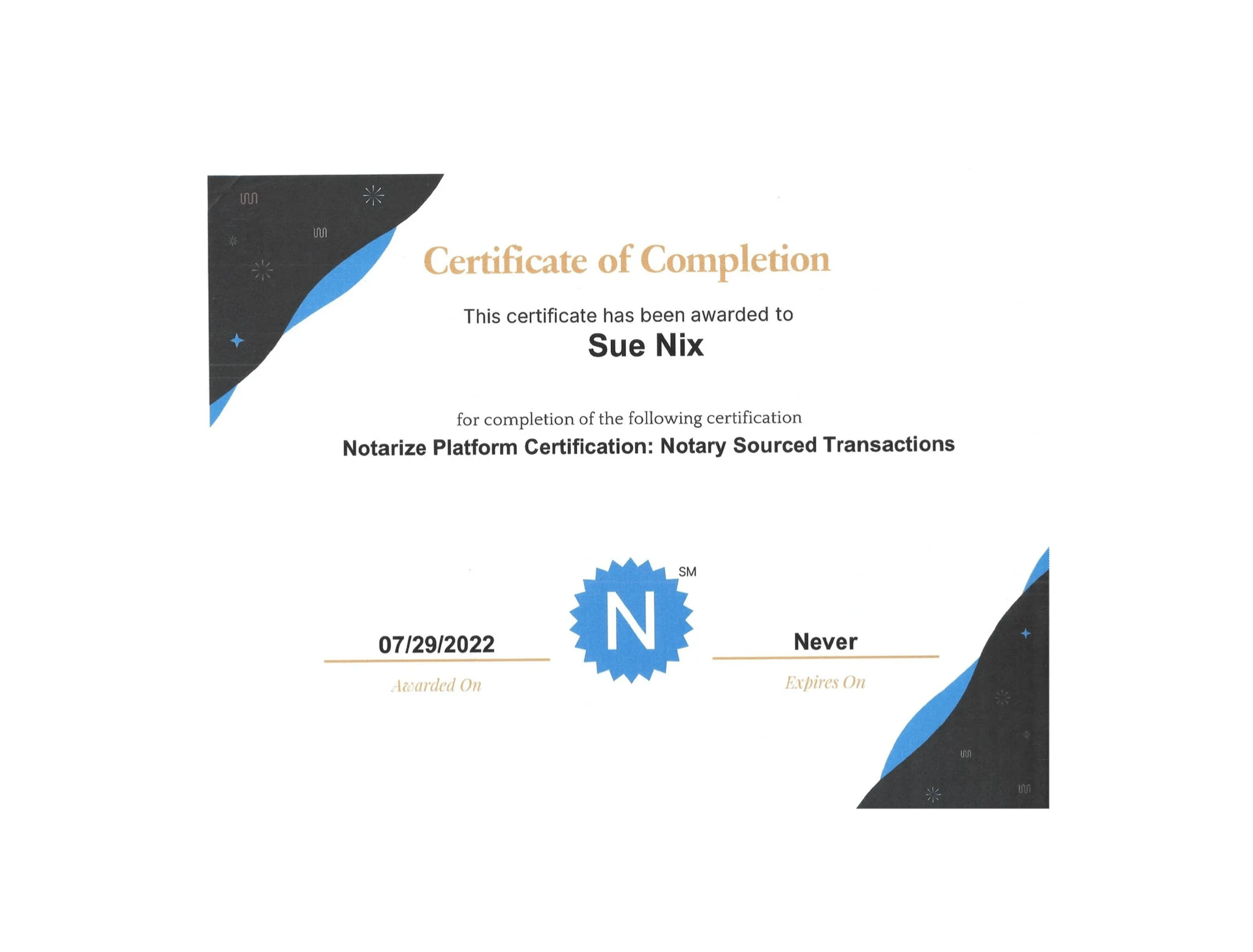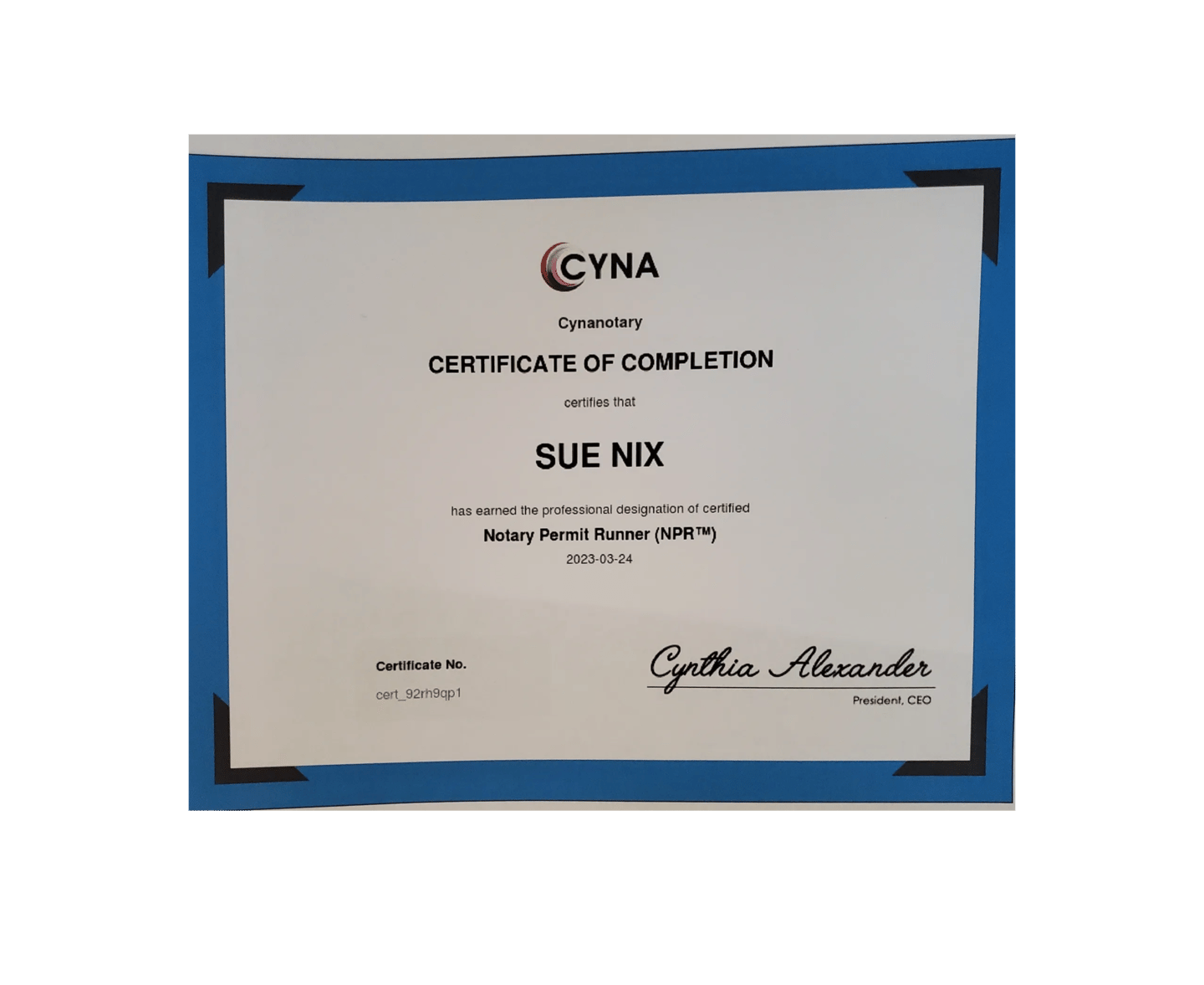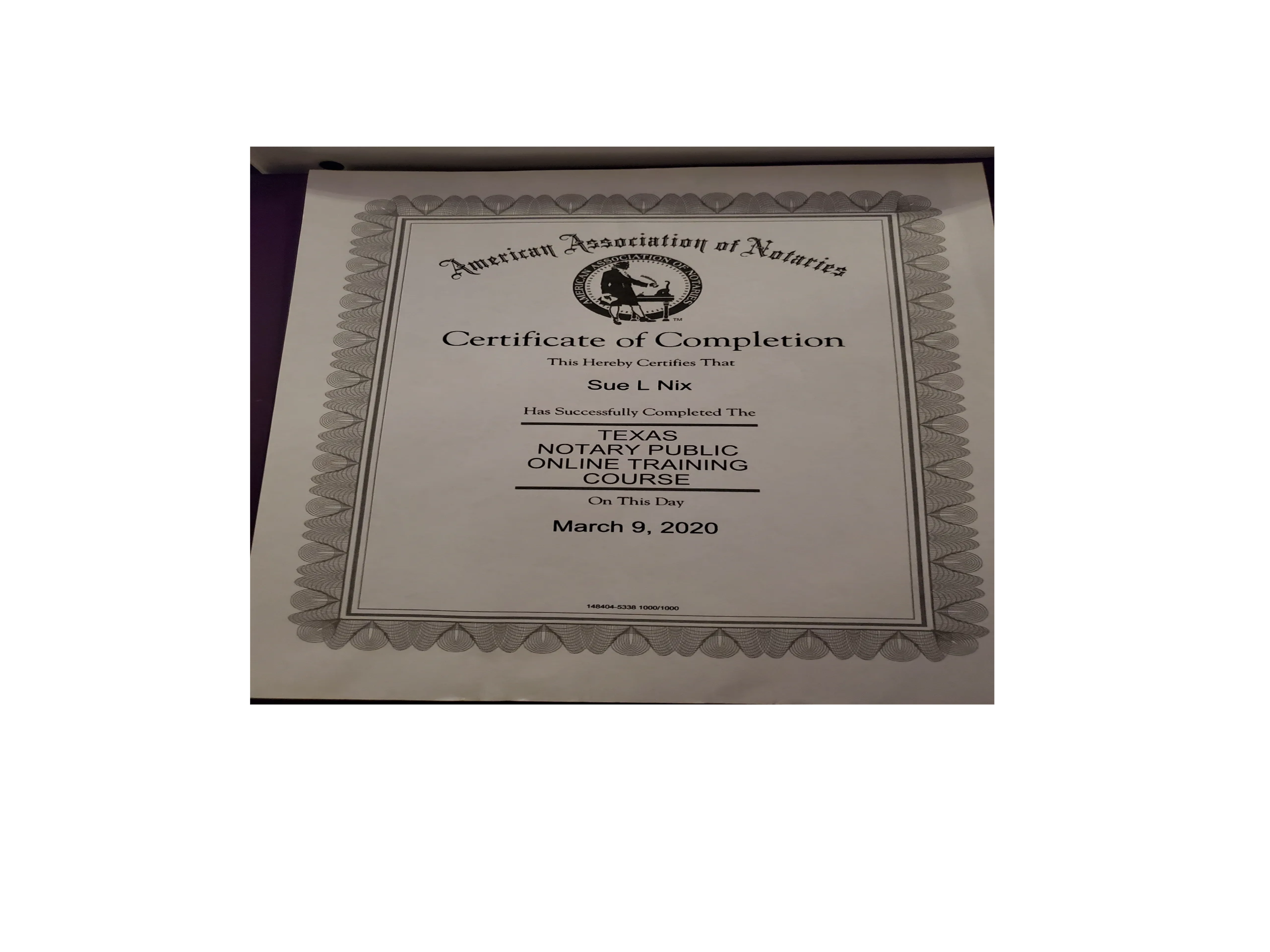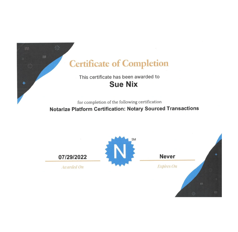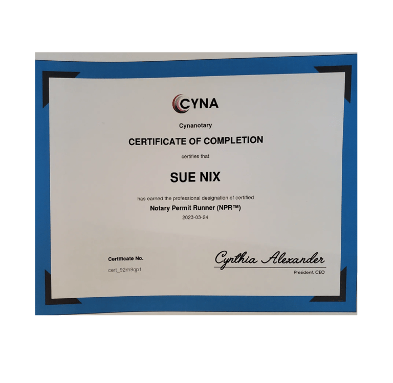 Certifcate of Completion for Notary Permit Runner