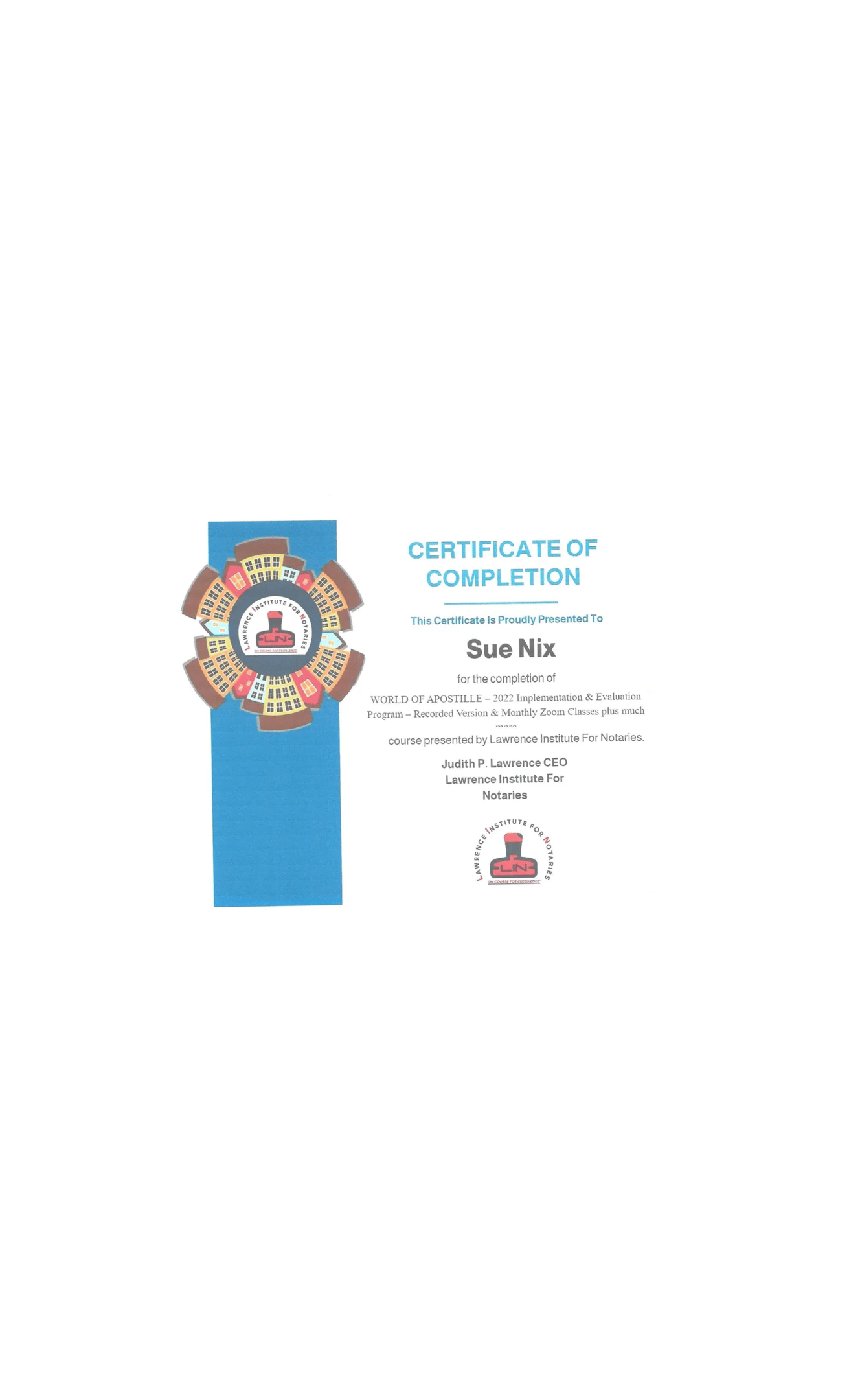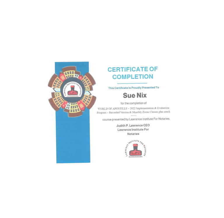 Certificate of Completion in the World of Apostille in Lawrence Institute For Notaries is a significant achievement that showcases one's dedication and hard work. This program offers comprehensive training and insight into the intricacies of apostille services, equipping graduates with the essential skills and knowledge necessary to excel in the field. By completing this course, individuals not only enhance their credentials but also gain a deep understanding of international document authentication processes, which are increasingly valued in today’s globalized environment. In addition to theoretical knowledge, participants also engage in practical exercises, giving them real-life experience in handling various apostille-related tasks. This certification is a stepping stone towards a successful career in notary services and related fields.