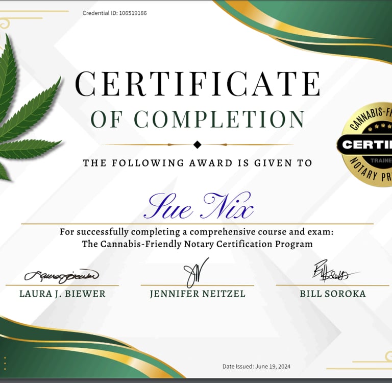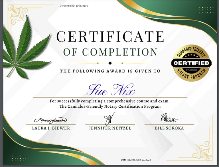 Completion Certificate for The Cannabis-Friendly Notary Course